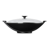 Le Creuset Satin Black Cast Iron 36cm Wok With Glass Lid