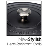 It designed with advanced interior enamel helps make cleaning easier, larger handles makes it easily move from hob to oven to table even when wearing oven gloves, and stainless-steel knob (heat resistant up to 260°C) designed for a better grip even when using oven gloves to lift the lid. Le Creuset Cast Iron comes with a Lifetime Guarantee for total peace of mind.