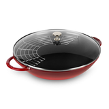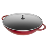 Staub Cast Iron 37cm Wok With Glass Lid Cherry Red