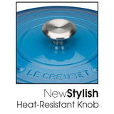 It designed with advanced interior enamel helps make cleaning easier, larger handles makes it easily move from hob to oven to table even when wearing oven gloves, and stainless-steel knob (heat resistant up to 260°C) designed for a better grip even when using oven gloves to lift the lid. Le Creuset Cast Iron comes with a Lifetime Guarantee for total peace of mind.