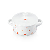 This unique white stoneware petite casserole is adorned with a Heart Decal design of red and pink hand painted watercolour-like hearts. The lid features an understated single red heart that provides an impactful design.