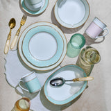 As sustainability has given a new meaning to fashion, green is the new black. The minty green has captured the "feeling of freshness, calm, and glamour" this new tableware collection wants to reflect. Each plate and piece is made from smooth porcelain on a matte finish with gold trim, which symbolizes refined elegance, and opulence.