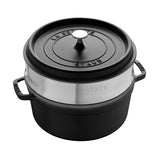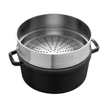 Staub Cast Iron 26cm Round Cocotte With Steamer Insert Black