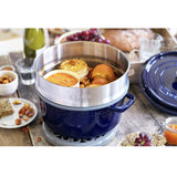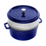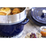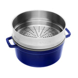 Staub Cast Iron 26cm Round Cocotte With Steamer Insert Dark Blue