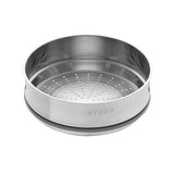First quality Staub cast iron product is ideal for searing and slow cooking of meat, fish or vegetables. The matt black enamelling is ideal for particularly searing and is especially durable. The cocotte with its steamer insert is perfect for a whole range of different dishes and even for preparing several dishes at the same time. The steamer insert is made of high-grade 18/10 stainless steel and has a silicone seal to ensure that heat is distributed perfectly over all the food inside. The 'spiked' design on the inside of the lid ensures that food is moistened from above.
