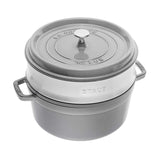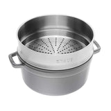 Staub Cast Iron 26cm Round Cocotte With Steamer Insert Graphite Grey