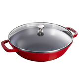 Staub Cast Iron 30cm Wok With Glass Lid Cherry Red