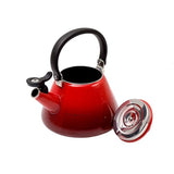 Each kettle is crafted from high quality steel with a colorful, durable, vitreous enamel finish that will go with your Le Creuset cookware perfectly. All Le Creuset Kettles feature a wide base for efficient heating, and a whistle to let you know when the water has come to the boil. The handle is locked in an upright position for steady pouring.